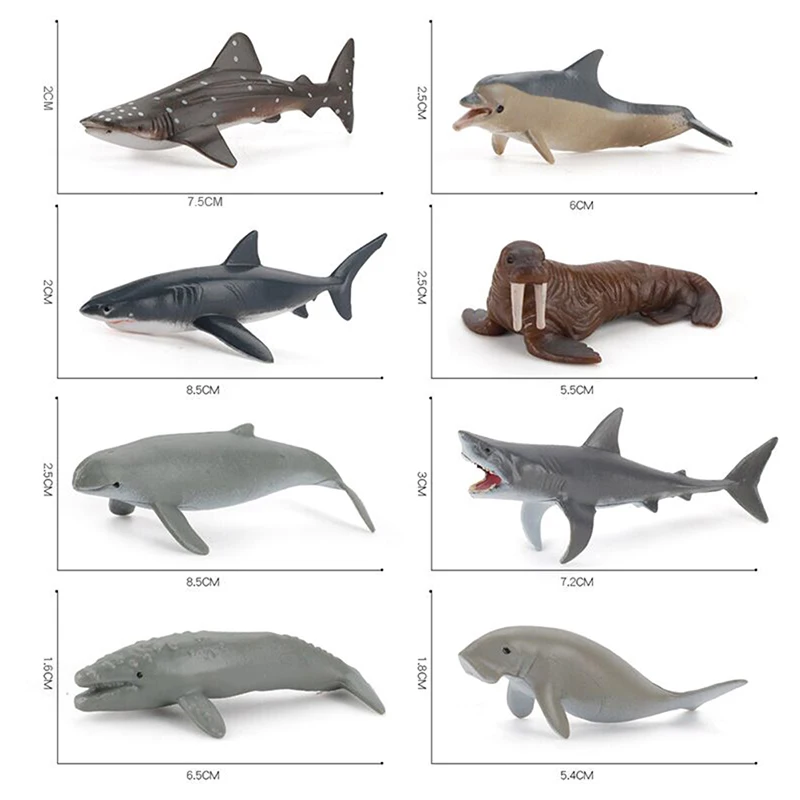 Esplora il meraviglioso mondo marino con i Modelli di Vita Marina Simulata. Questi modelli di animali dell’oceano, tra cui squalo, delfino e squalo martello, sono perfetti come giocattoli educativi, topper per torte e collezioni regalo.