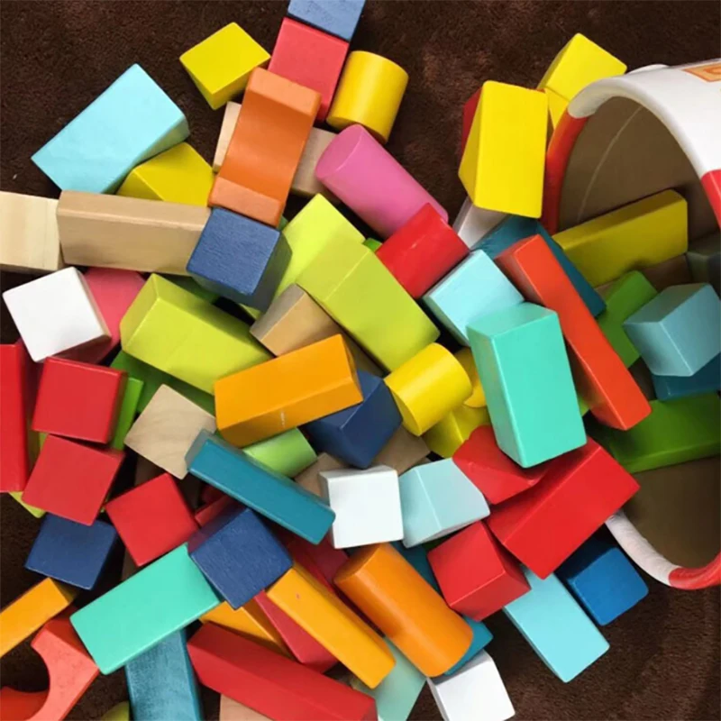 - 100 blocchi di costruzione in legno di varie forme e colori